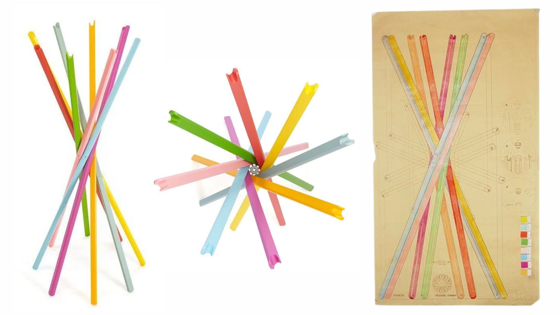 Chaque élément en bois s’étend du sol, offrant un support stable, et s’élève pour créer un support pour les chapeaux, manteaux et autres vêtements. La structure pliable représente une interprétation moderne du porte-manteau traditionnel, ce qui en fait une pièce de design avant-gardiste. Son originalité se manifeste également dans le mécanisme d’ouverture-fermeture, réalisé avec une rondelle en acier, qui permet une gestion facile et un positionnement polyvalent dans divers environnements, du couloir à l’entrée ou au bureau.