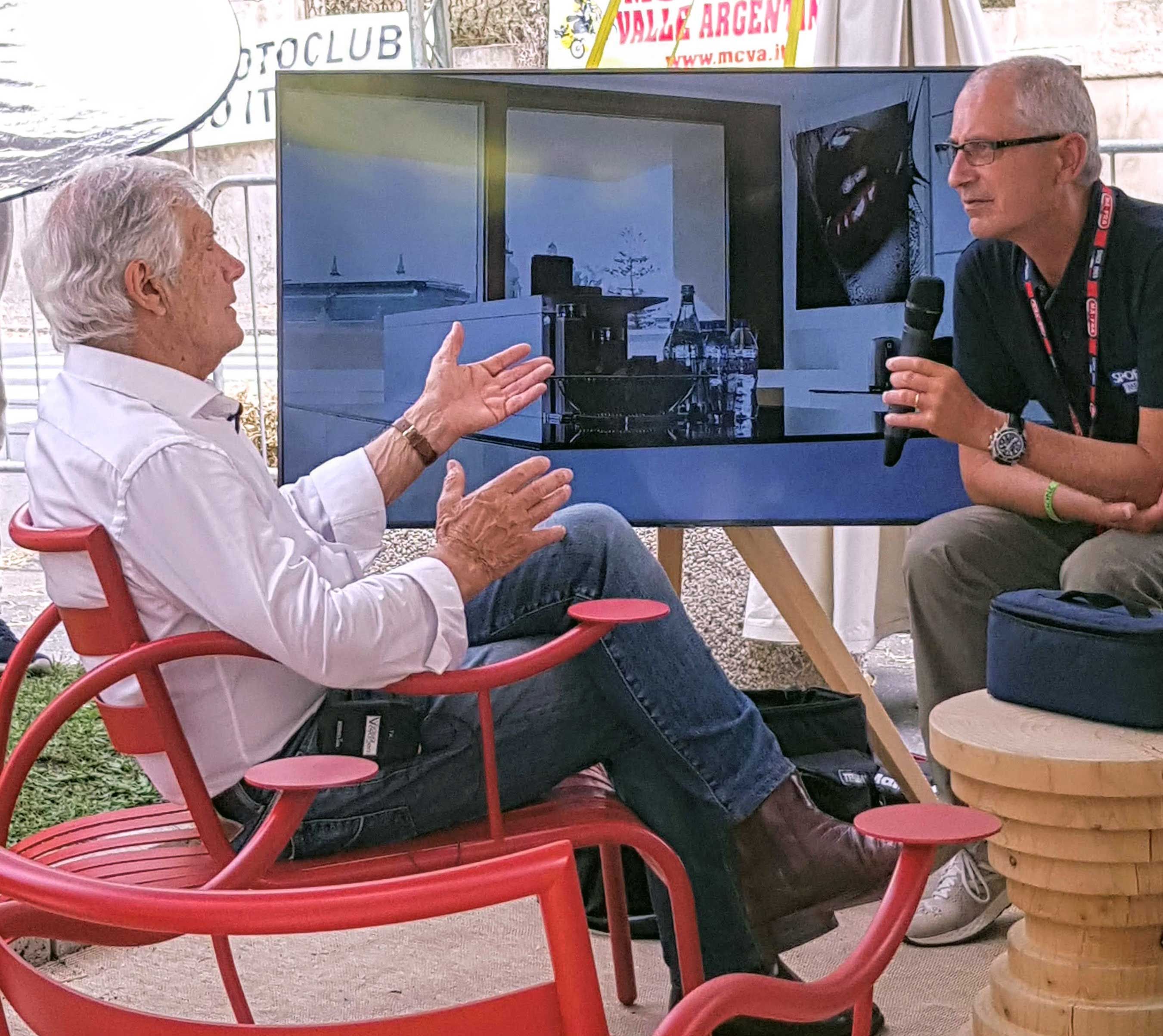 Alberto Porta de l’interview de Mediaset Giacomo Agostini dans notre stand