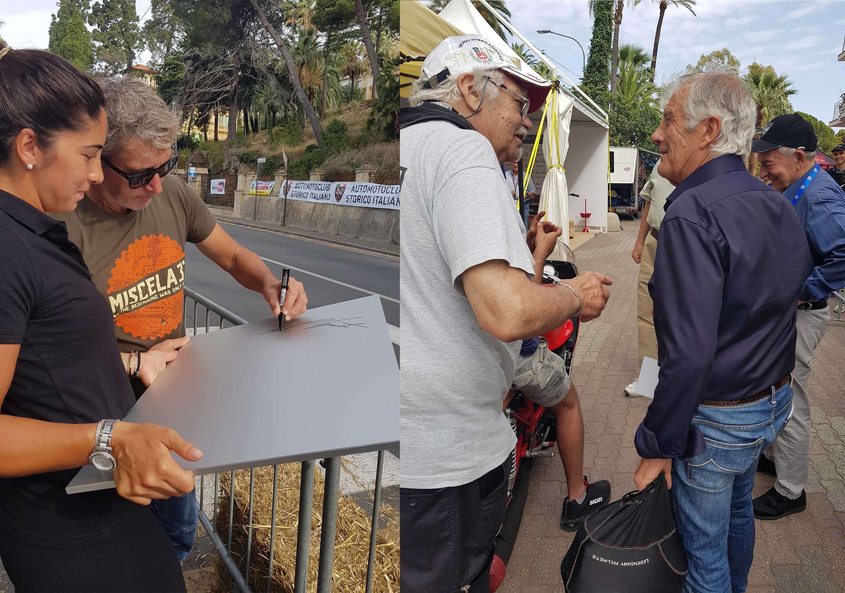 Que de jours nous avons eu ! Un week-end, celui des 4 et 5 juin, dédié au sport et au partage des plus belles pages de l’histoire du motocyclisme. Des champions du monde du calibre de sont passés par notre stand Giacomo Agostini, Pierpaolo Bianchi, Troy Bayliss et bien d’autres encore, entourés de la beauté du design italien grâce à Vibrazioni Art Design (lire l’article que nous lui avons consacré ici, et Riva 1920, un champion international du design éco-durable.