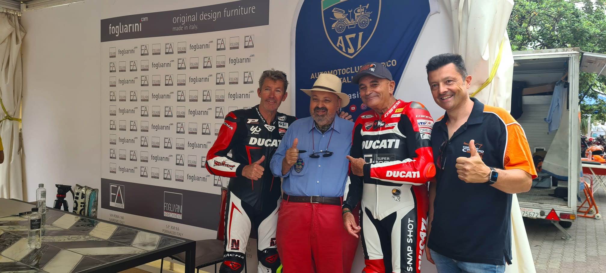 À partir de la gauche Troy Bayliss, Palmino Poli de l’ASI (automotoclub historique italien), Dario Marchetti, pilote et coordinateur de la DRE (Ducati Riding experience/Ducati riding academy), Livio Bellone, Pilote et instructeur DRE
