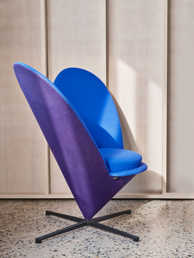 Tout au long de l’année 2026, afin de célébrer son héritage créatif, Vitra et le Vitra Design Museum ont organisé un programme d’événements et d’initiatives en collaboration avec la famille Panton. Celui-ci comprend des expositions dédiées, le lancement de produits habillés de nouveaux tissus et cuirs, plusieurs éditions limitées ainsi que la réédition de certains de ses projets les plus emblématiques.