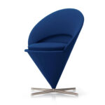 Parmi les projets les plus célèbres de Panton figure la Panton Chair, présentée en 1967 et devenue la première chaise réalisée en plastique moulé en une seule pièce. Avec sa silhouette sinueuse et son caractère expérimental, cette assise est devenue l’une des icônes les plus reconnaissables du design du XXᵉ siècle.